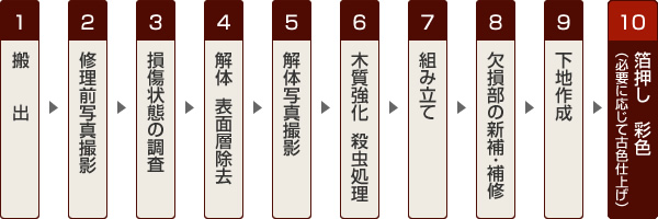 当社の現状維持修理では、現状のままで保存に耐えるような処理をし ご寺院様とご相談の上、念の対象となるよう補修させて頂きます。