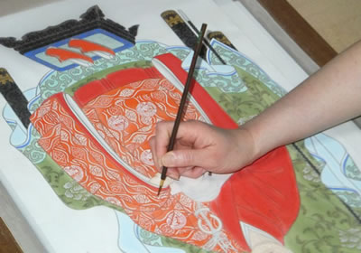 現在の剥落具合、絹、絵の具の変色なども忠実に模写します。 |